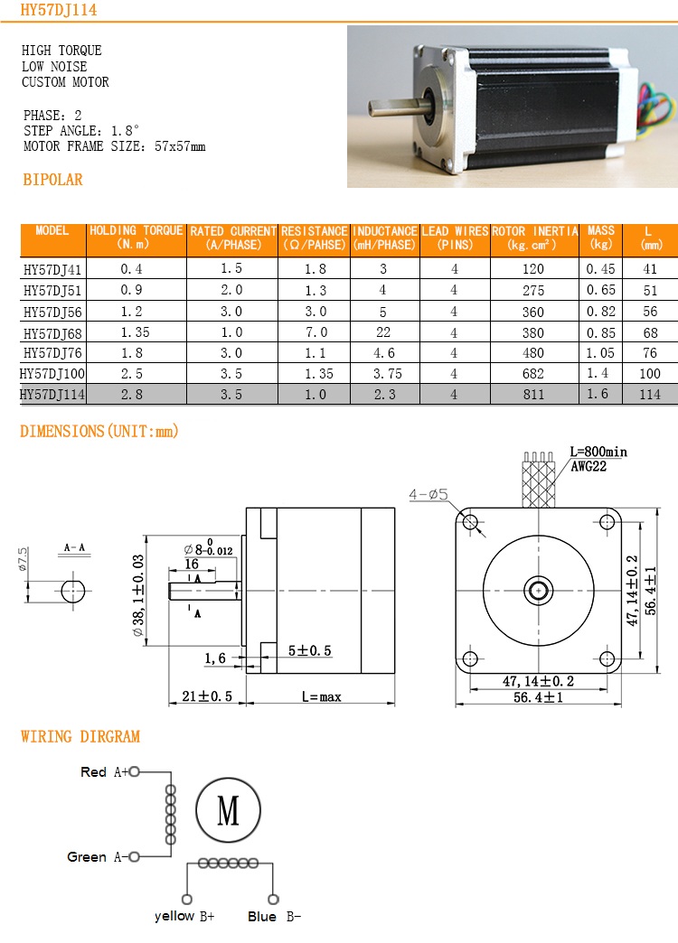 Stepper Motor (Nema 23) แรงบิด 2.8N.m 3.5A Shaft 8mm (HY57DJ114)