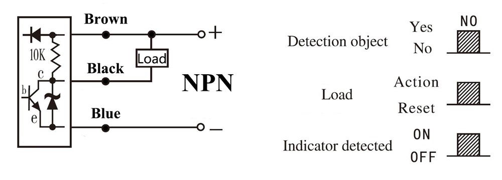ตัวเซนเซอร์เป็นแบบ NPN แบบ NO ระยะตรวจับ 10mm หากเราต่อสายไฟเรียบร้อยแล้ว ทำการใช้แม่เหล็กเข้ามาในะระยะตรวจจับสัญญาณไฟด้านหลังเซนเซอร์จะติด ปรกติไฟจะดับอยู่ ให้เราสังเกตุได้ สัญญาณสายสีดำจะเกิดแรงดันไฟฟ้าเป็นสัญญาณตรวจจับ