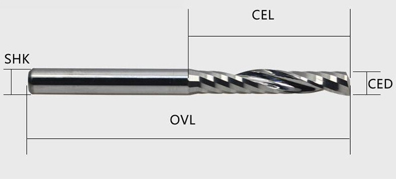 Wood/Acrylic - 3.175x2x12mm Single Flute Bit Carbide End Mill (SHKxCEDxCEL) เกรด 3A