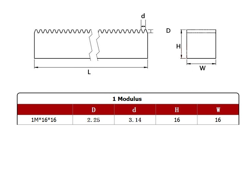 1.0 Modulus 16x16x1000mm Gear Rack Precision (straight teeth)