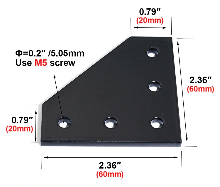 Black L-90 degree joint plate 5-Hole สำหรับ Series 20 Alu Profile