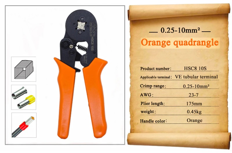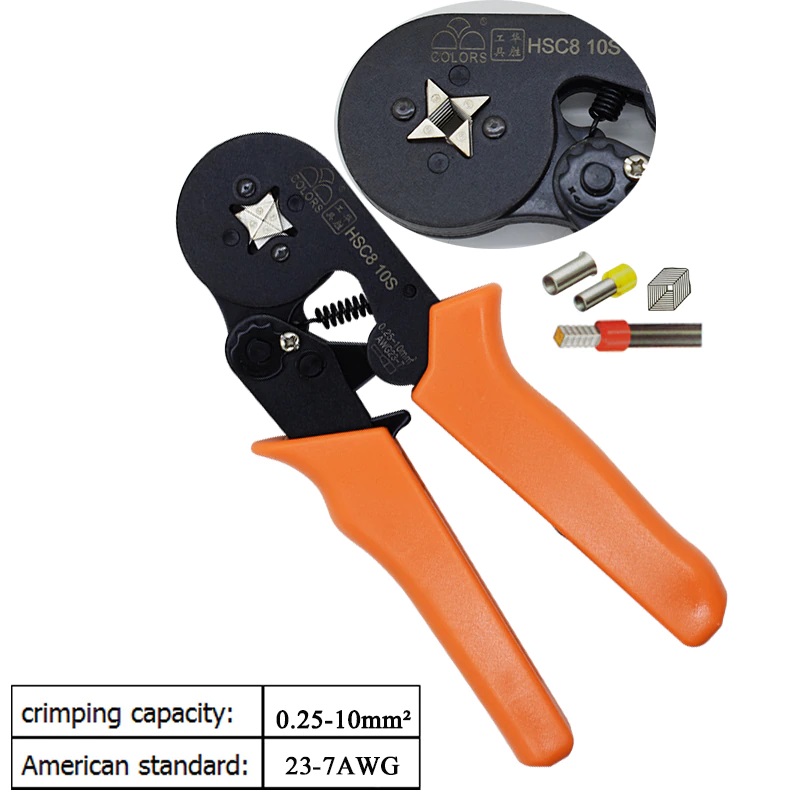 HSC8 6-4 คีมเข้าหัวสายไฟ 0.25-10 mm Tubular Terminal Crimper 23-7AWG