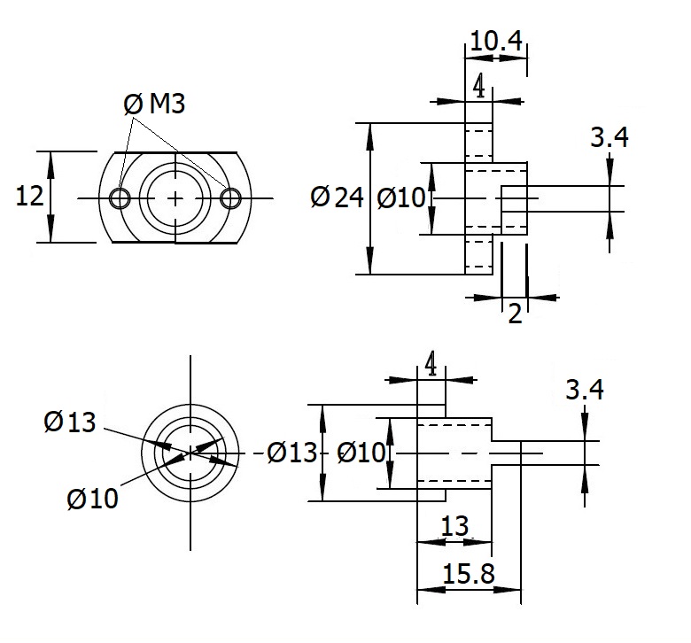 Type : Trapezoidal anti-backlash tr8 pom nut