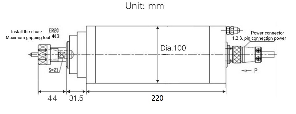 3.2 kw 220V ER20 Water Cooled Spindle Motor (4 Bearing) Ø100x220 mm