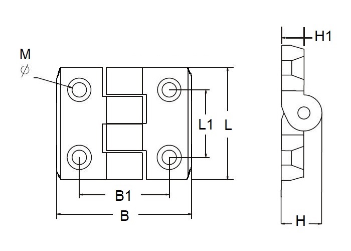 Hinge | B | B1 | L | L1 | M | H1 | H |